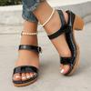 Fashion One Strap White Thick Heel Sandals for Women Lightweight Pu Leather Ankle Buckle Sandles Woman Plus Size Summer Sandalias Mujer