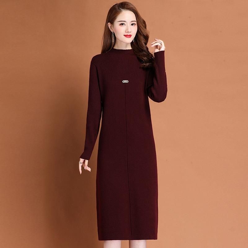 Knitted Dress Medium and Long Sweater Women's Autumn and Winter New Loose and Thin Semi-round Neck Bottoming Sweater Skirt