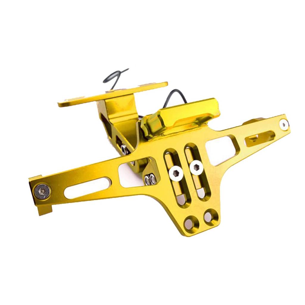 Karun License Plate Stay, License Plate Holder, Shaved Aluminum, Adjustable Angle, LED Light, Universal Motorcycle Accessories (Gold)