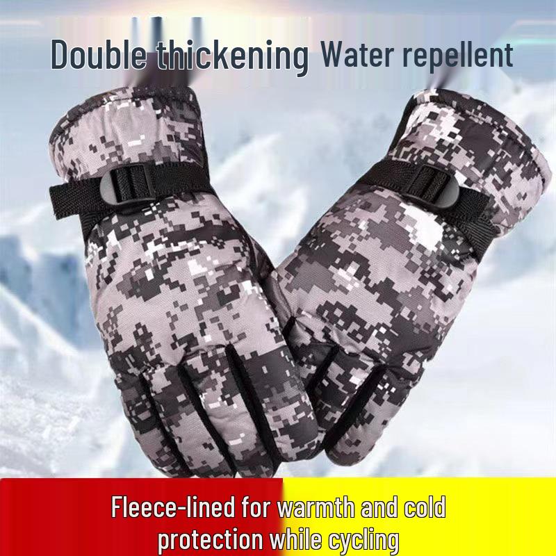 Men's Fleece Lined Winter Skiing & Cycling Gloves - Windproof, Waterproof, Thickened Cotton, Warm Motorcycle Gloves for Cold Weather.