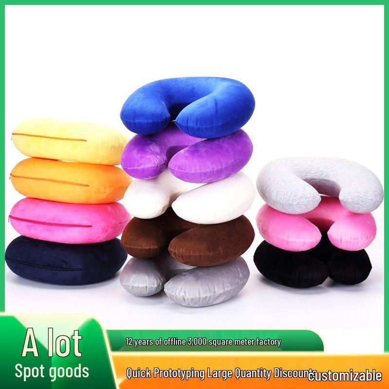 Promotional Inflatable U-Shaped Travel Neck Pillow with Plush Outerwear