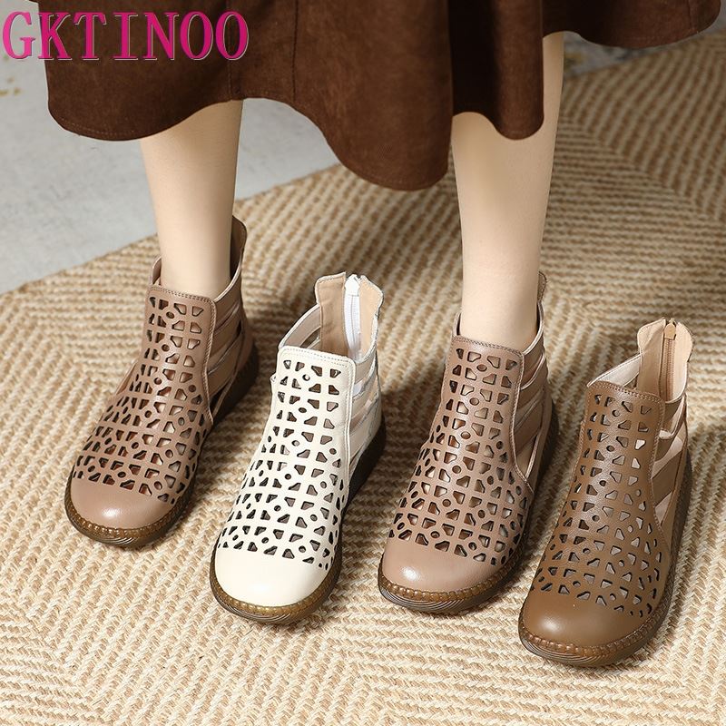 Fashion GKTINOO Large Size 2025 Genuine Leather Summer Sandals Breathable Hollow Boots Flat Soft Non-slip Comfortable Sandalias De Mujer