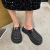 Fashion Slope Slippers Summer New Round Head Deep Mouth Mesh Cloth Rivets Metal Buckle Waterproof Platform Non-slip High Heels