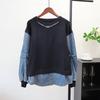 Splicing Denim Knitted Sweater Top Autumn and Winter New Design Sense Loose Fake Two-piece Sweater Pullover Women