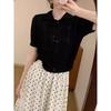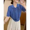 Summer Ice Silk Hollow Blue Lapel Short-sleeved Knitted Sweater Women's New Commuter Versatile Chic Polo Top