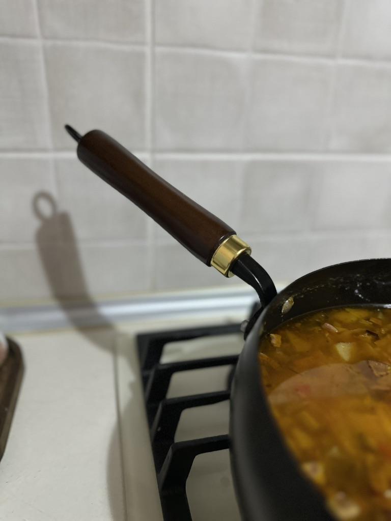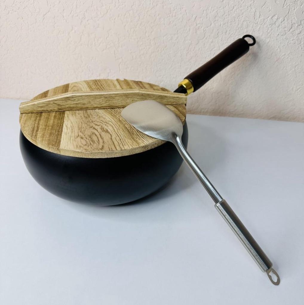 Versatile Culinary Companion: Unleash the thick design cooking pot's multifunctional prowess with 7-in-1 capabilities suitable for various cooking styles. From stir-fries to soups and fried delights, its 4cm depth caters to diverse culinary needs. Lightweight yet robust, it empowers effortless one-handed operation, complemented by a heat-resistant wooden handle for secure grip.