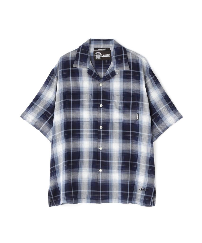 Avirex One Point Ombre Check Short Sleeve Ombre Check Size XL Shirt, Men's Shirt, (110), Blue, 783-5123010