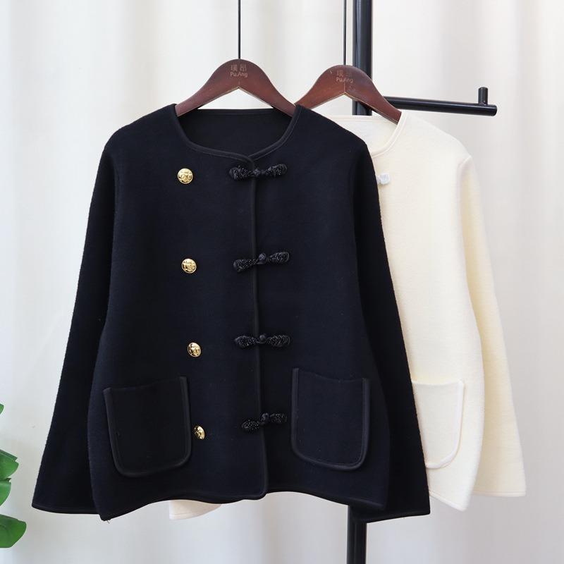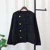 Autumn and Winter New Buckle Design Sense Knitted Double-sided Nylon Cardigan Temperament Sweater Jacket Women
