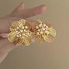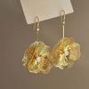 Vintage Metal Hollow Flower Drop Earring for Women Trendy Gold Color Crystal Geometric Personality Ear Hook Wedding Zircon Gift