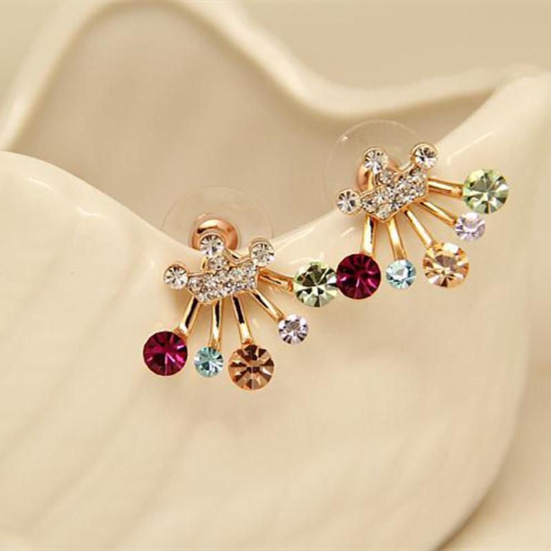 2024 Fashion Gold Cute Color Ful Bow Crystal Earrings Elegant Crown Stars Crystal Earrings Bohemian Earrings Women's Jewely