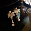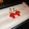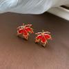 Zircon Red Maple Leaf Ear Buckle Personality Earring for Women Light Luxury Drop Earrings High-grade Women's Wholesale Zircon