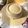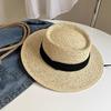 New Flat-top Straw Hat Women's Big Head Circumference Seaside Beach Top Hat Woven Sun Hat Summer