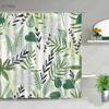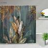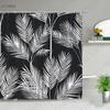 Tropical Green Plant Bathroom Shower Curtains Black Background Gold Palm Leaf Pattern Bath Curtain Waterproof Bathtub Home Decor