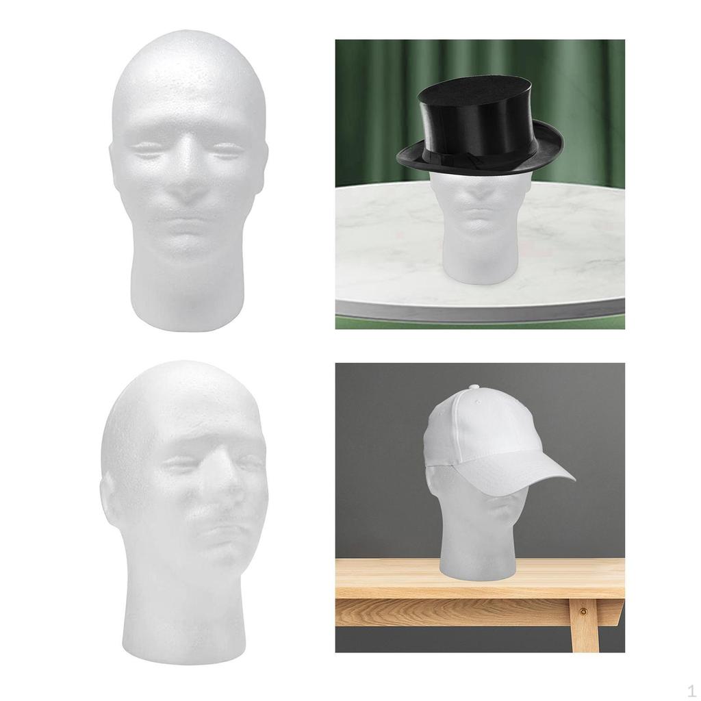 2x Man Foam Manikin Head, Hats Display Head Model Stand Holder for Headsets Hairpiece Home Salon