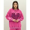 Pink Leopard Print Heart Woman Washed Sweatshirts Cotton Loose Pullovers Crewneck Sportswear Warm Autumn Womens Clothes