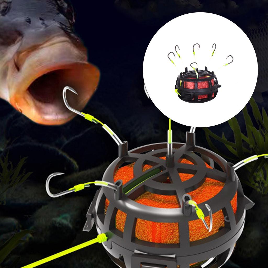 2pcs Anti-Bottom Fishing Rig Set Professional String Hook Bait Cage with 6 Hook Anti Winding Line Group Feeder Sinker