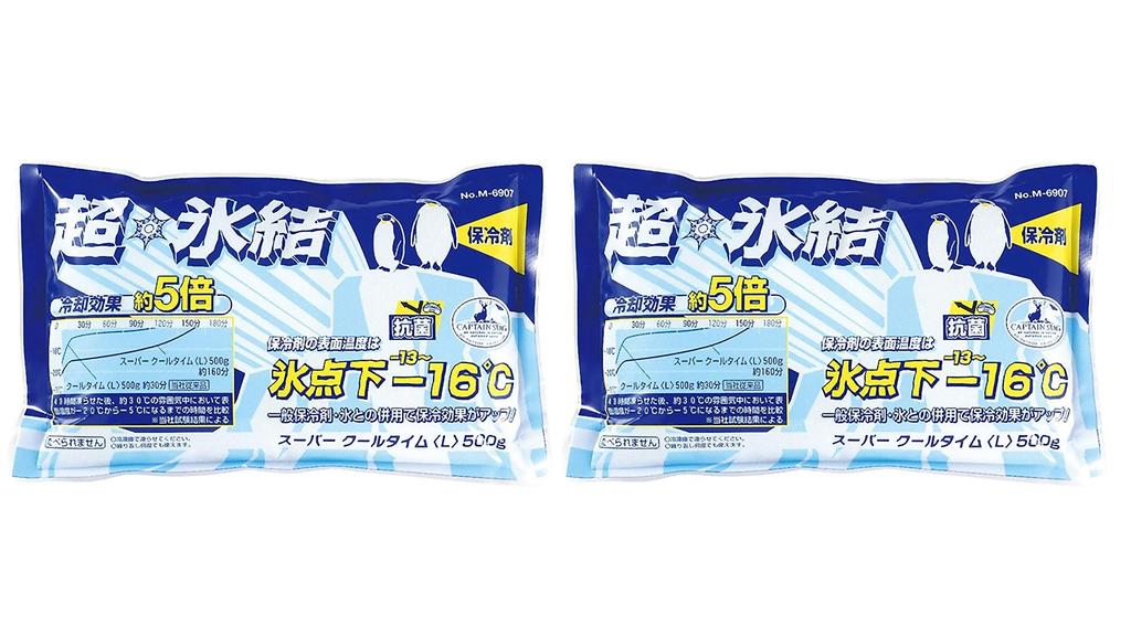 Captain Stag Super Cool Time Ice Super 5x Cooling Keeps Food Cold for 160 Minutes To Set of Packs, Freeze, Effect, (-13°C -16°C), Large, 500g, 2,
