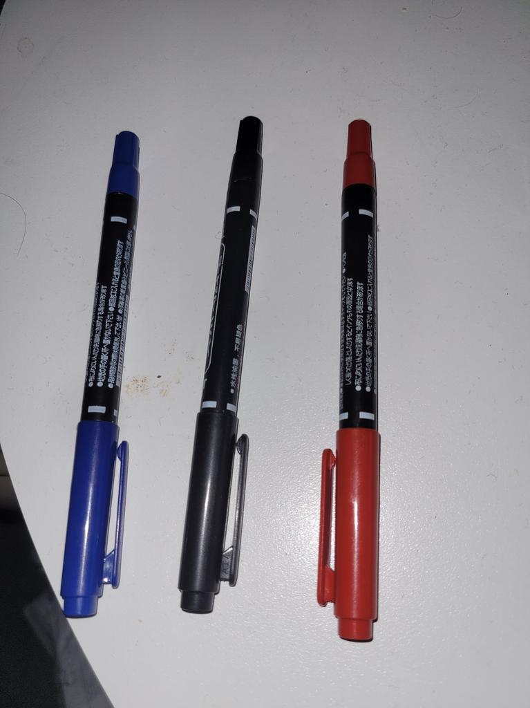 Black writes well. But the red and blue inks are not saturated. The writing with these pens is poorly visible on plastic.