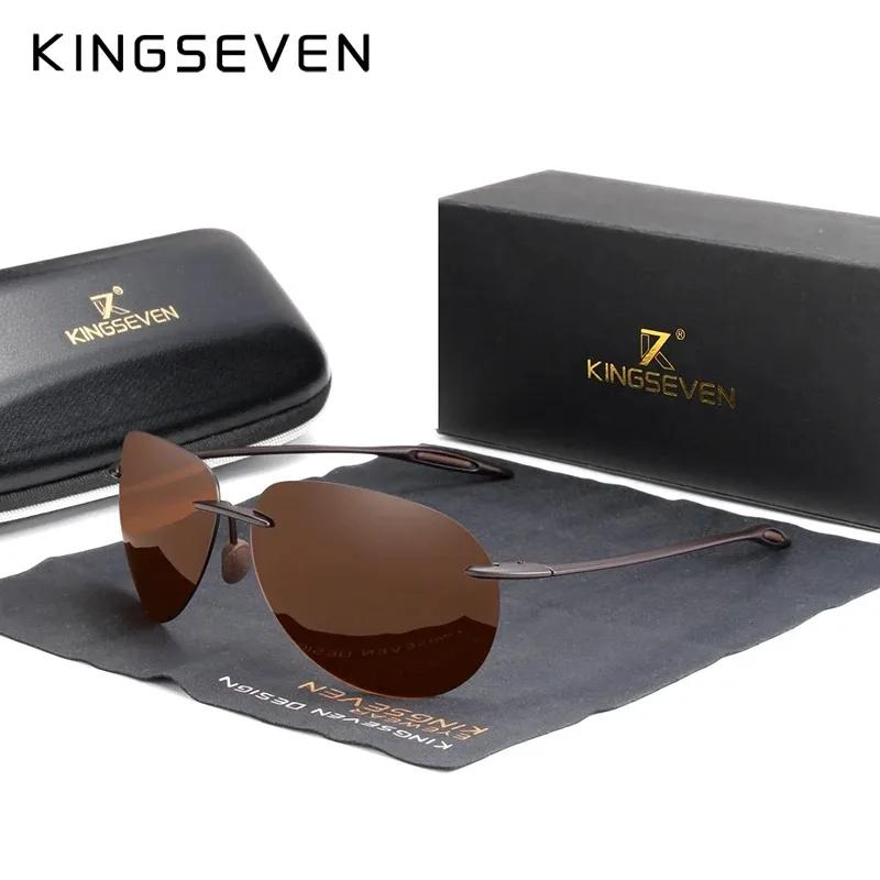 KINGSEVEN Rimless Pilot Sunglasses Men Ultralight TR90 Frameless Polarized Eye Protection Glasses Women Driving Vacation Eyewear