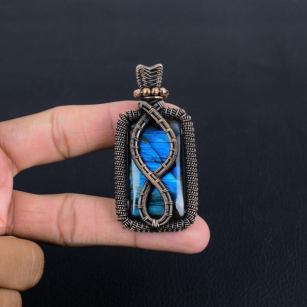 Labradorite Pendant, Handmade Gemstone 999 Copper Wire Wrapped Pendant Antique Jewelry, For Gift Silver Jewelry