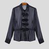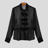 INCERUN Men Long Sleeve Bow Knot Mesh Sheer Hollow Out Party T-shirts Tops