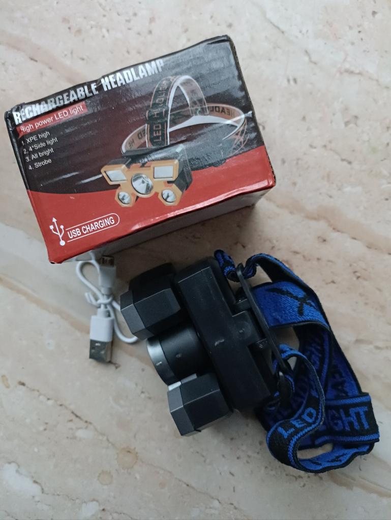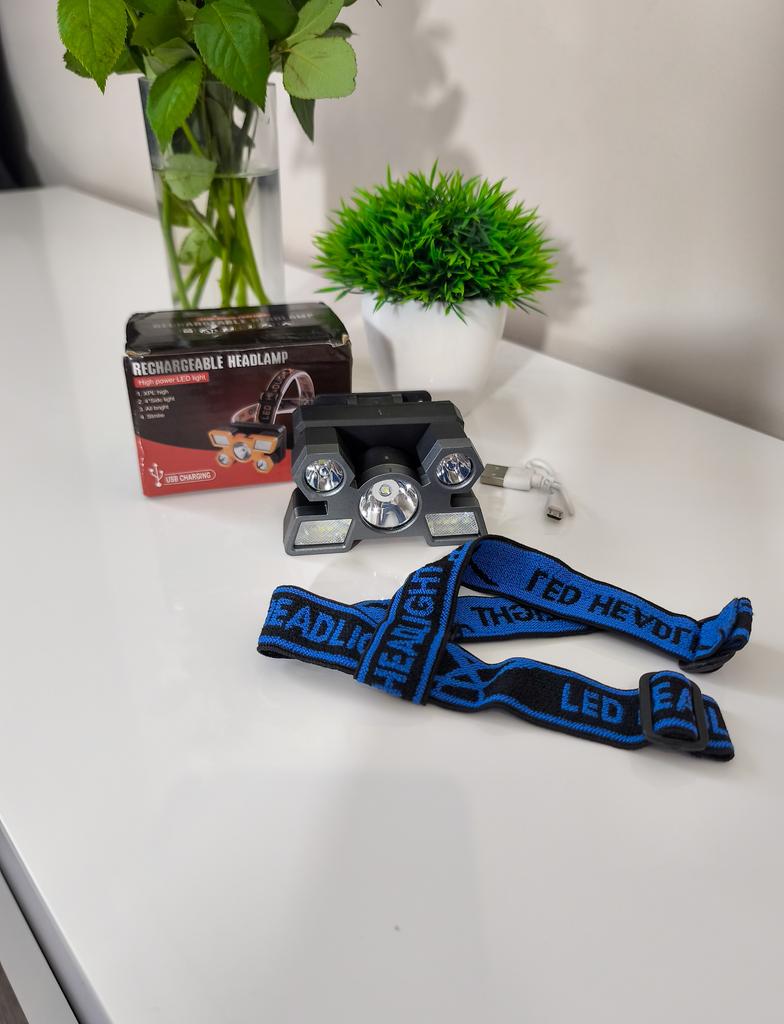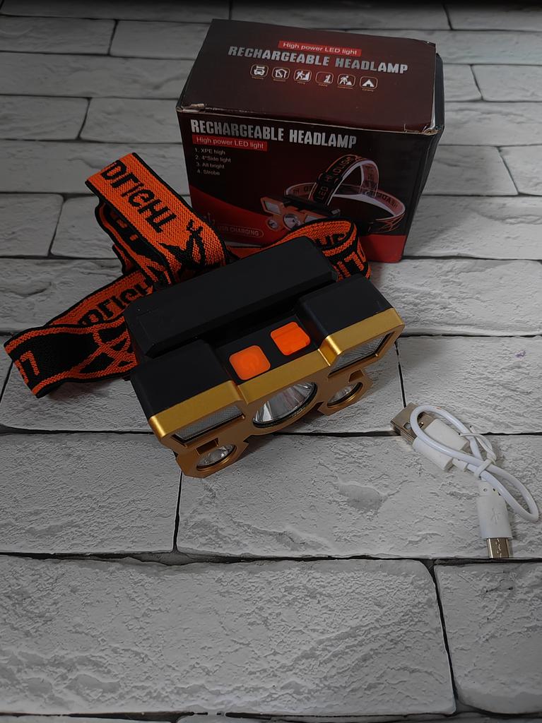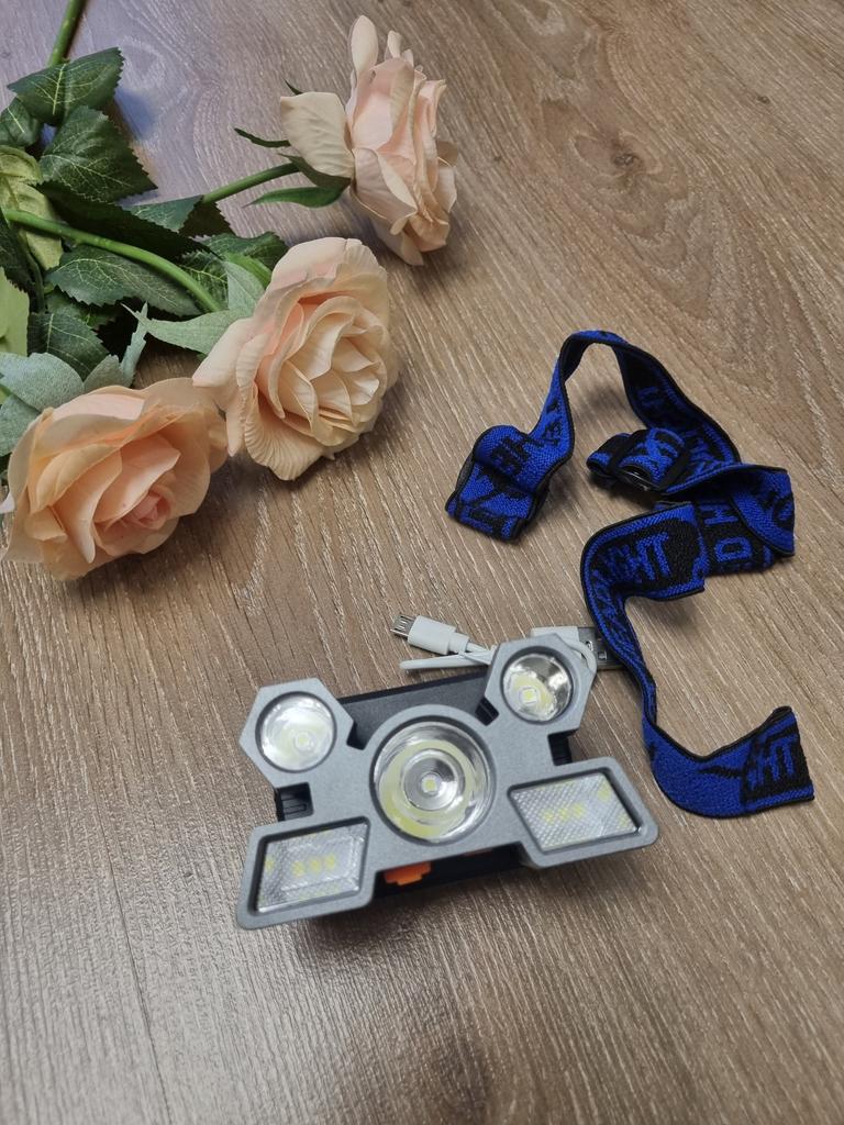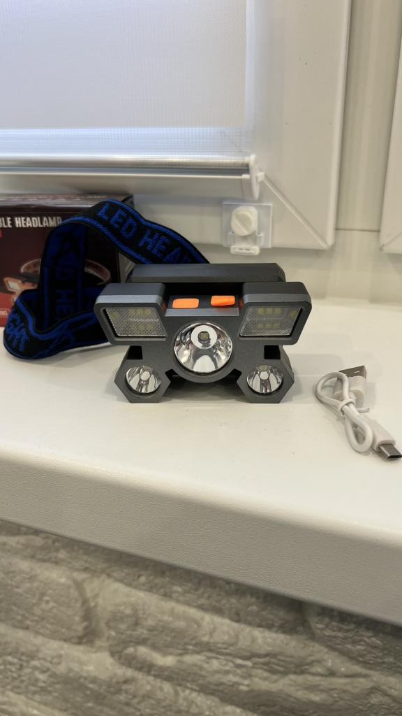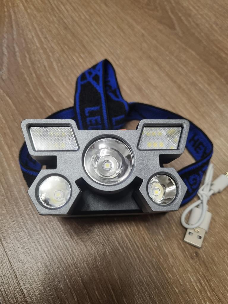 LED Headlamp. Headlamp — a compact and practical lighting device that attaches to the head and provides complete freedom of hands. Headlamp is widely used in tourism, hiking, camping, fishing, hunting and during work in the dark.. A headlamp allows you to direct light exactly where you need it, without restricting movement and increasing user safety.. Has five lighting modes. A USB cable is included. The flashlight arrived charged, works well. I recommend to buy.