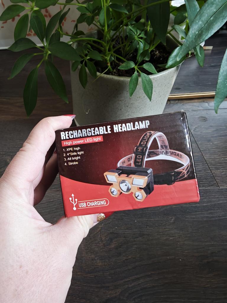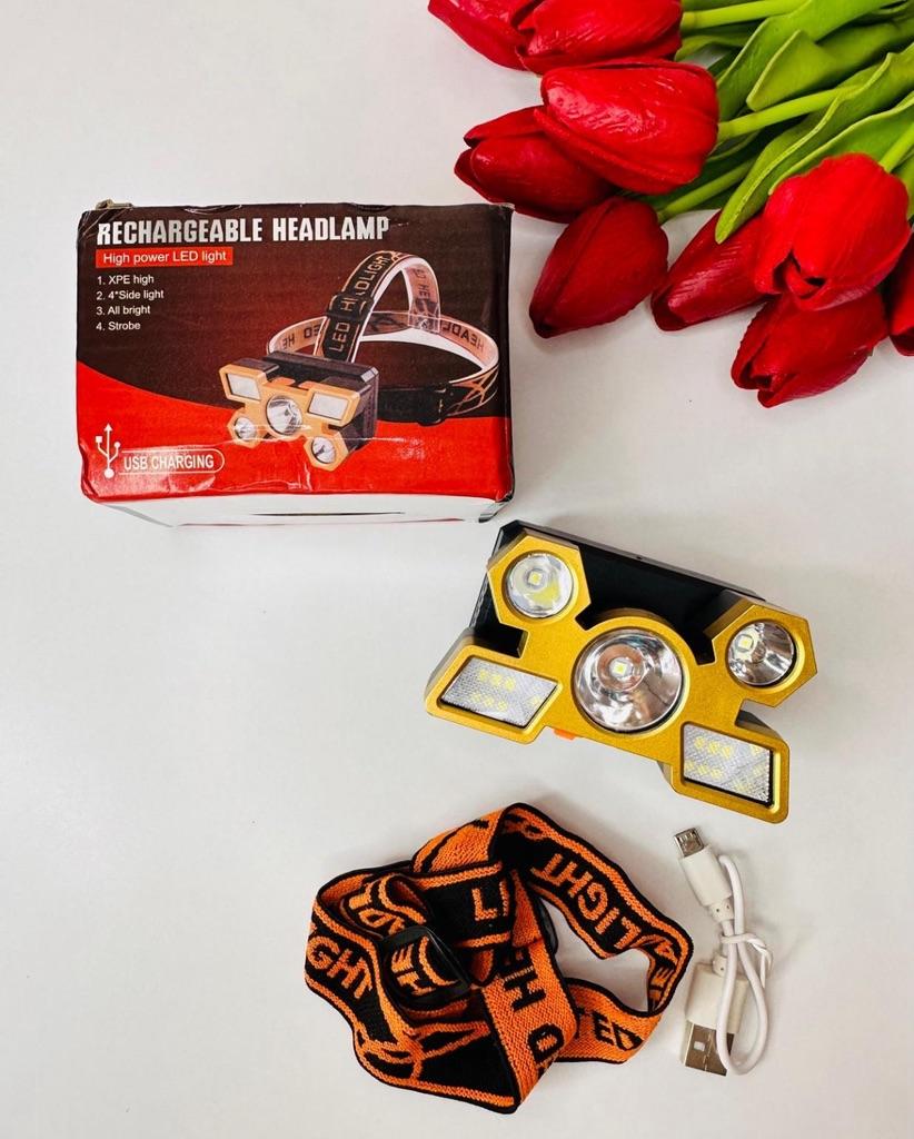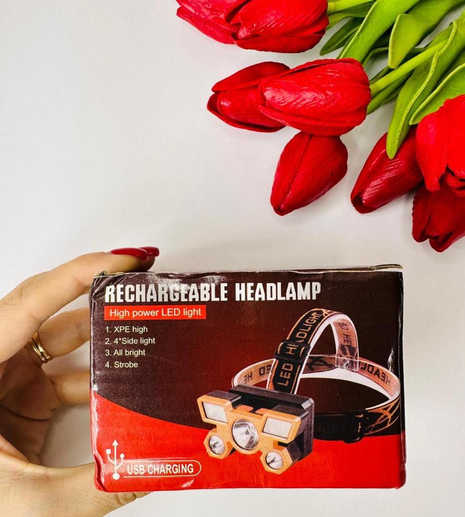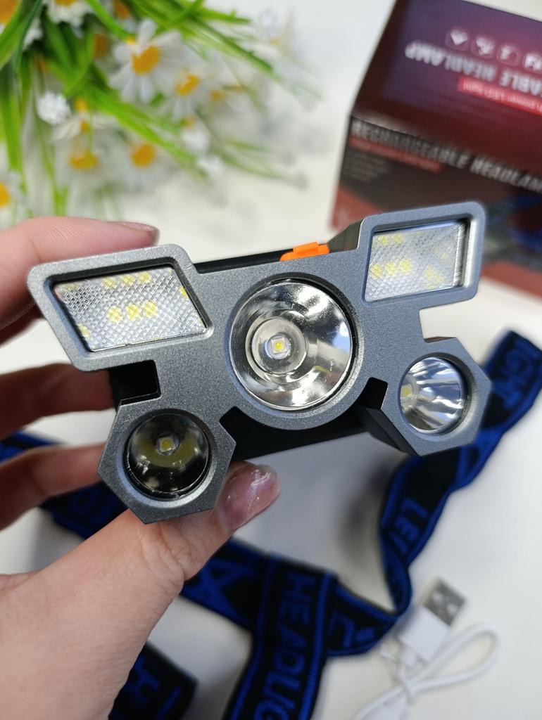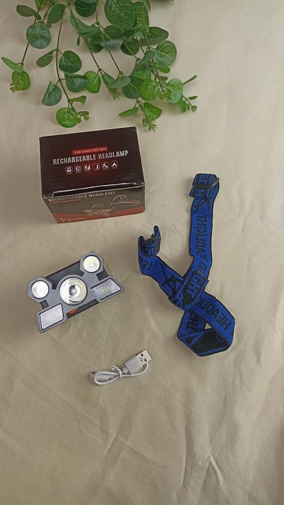 LED Headlamp. Headlamp — a compact and practical lighting device that attaches to the head and provides complete freedom of hands. Headlamp is widely used in tourism, hiking, camping, fishing, hunting and during work in the dark.. A headlamp allows you to direct light exactly where you need it, without restricting movement and increasing user safety.. Has five lighting modes. A USB cable is included. The flashlight arrived charged, works well. I recommend to buy.