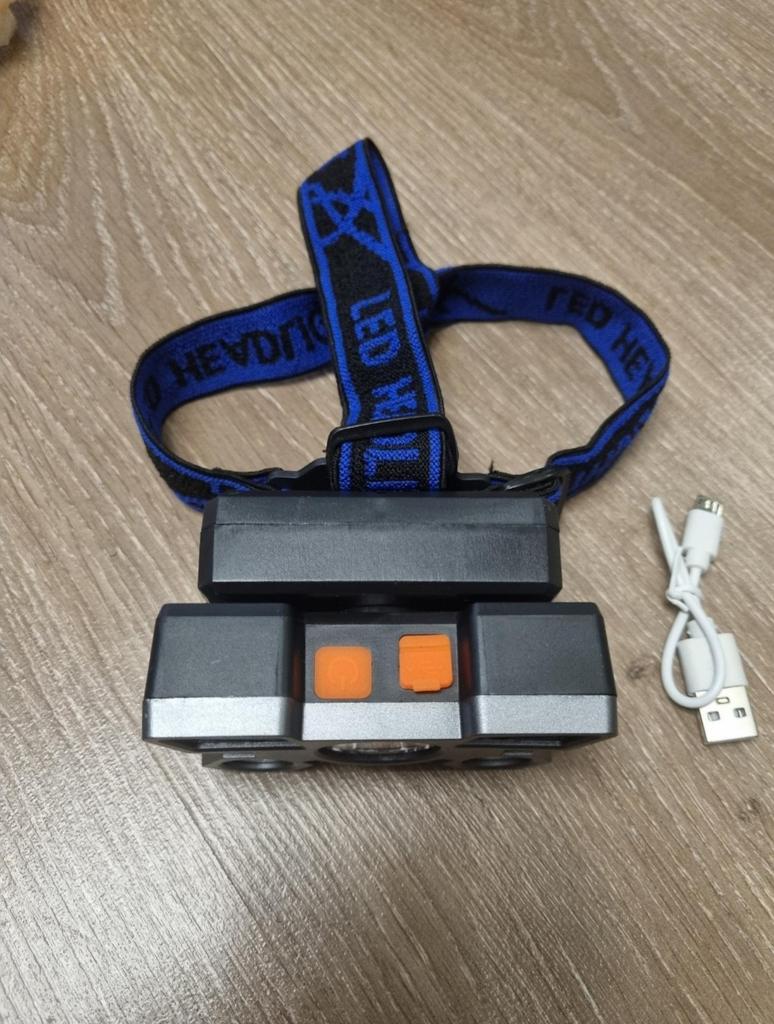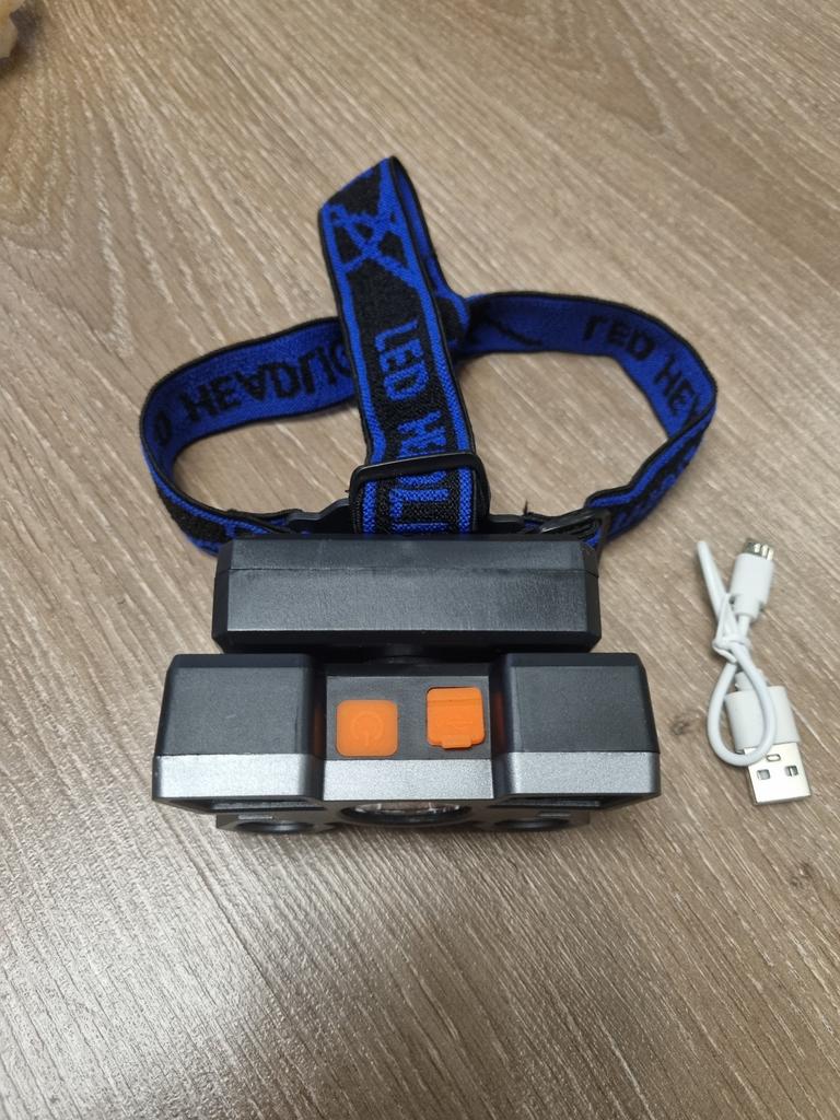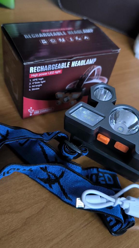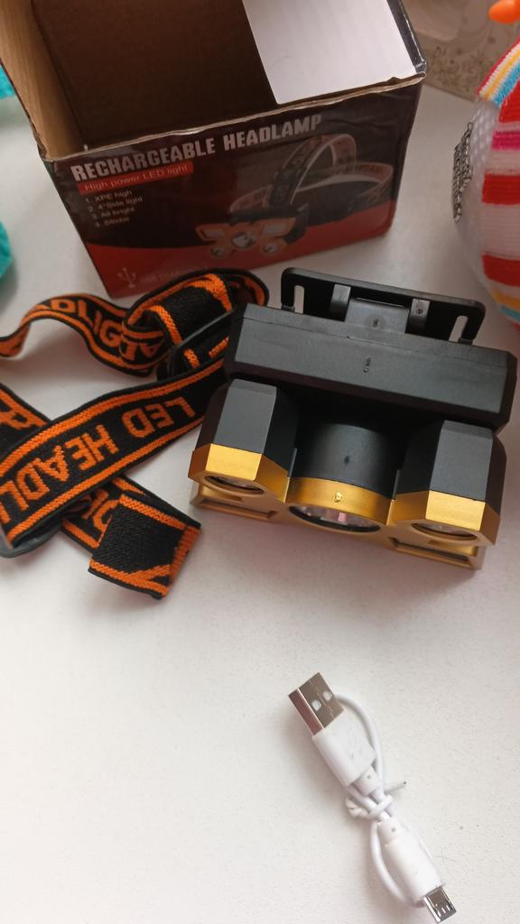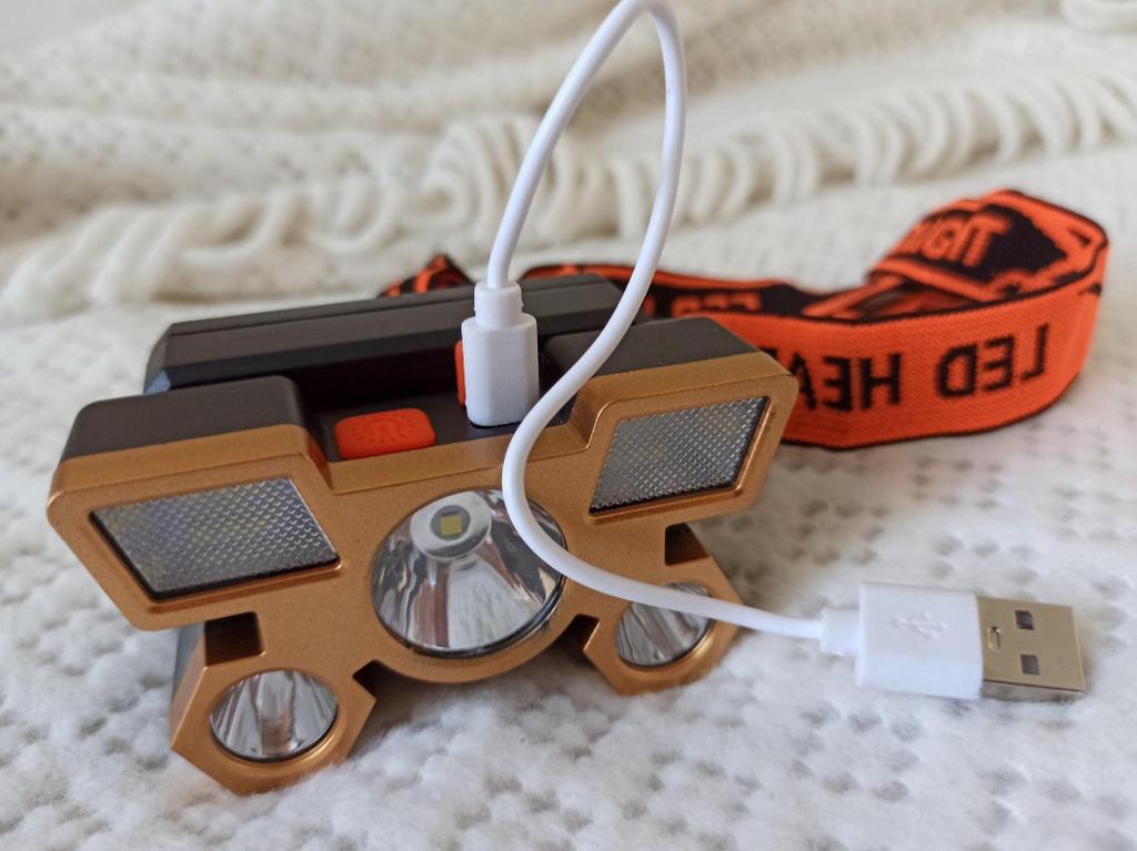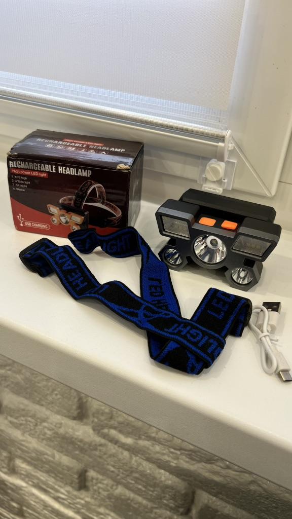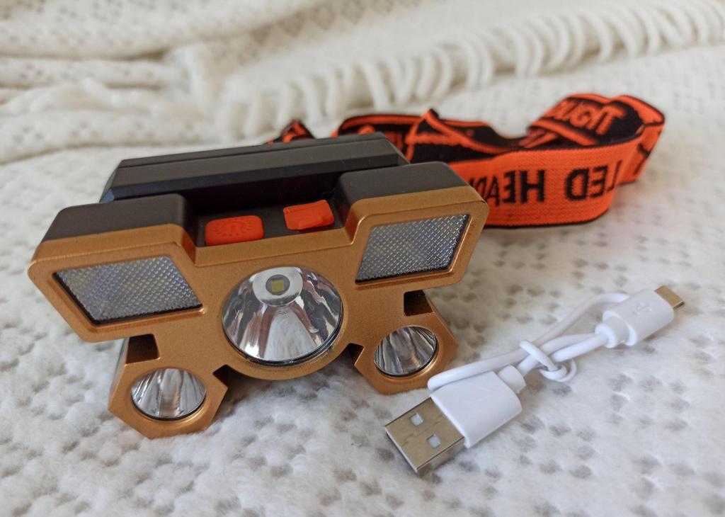 Headlamp. This is a compact and practical lighting device that attaches to the head and provides complete freedom of hands. Headlamp is widely used in tourism, hiking, camping, fishing, hunting and during work in the dark.. Such a flashlight allows directing light exactly where needed, without restricting movement and increasing user safety.. Has 4 lighting modes. A USB cable is included. The flashlight arrived charged, works well. I recommend to buy.