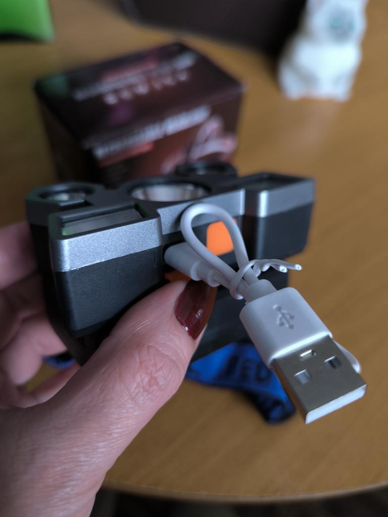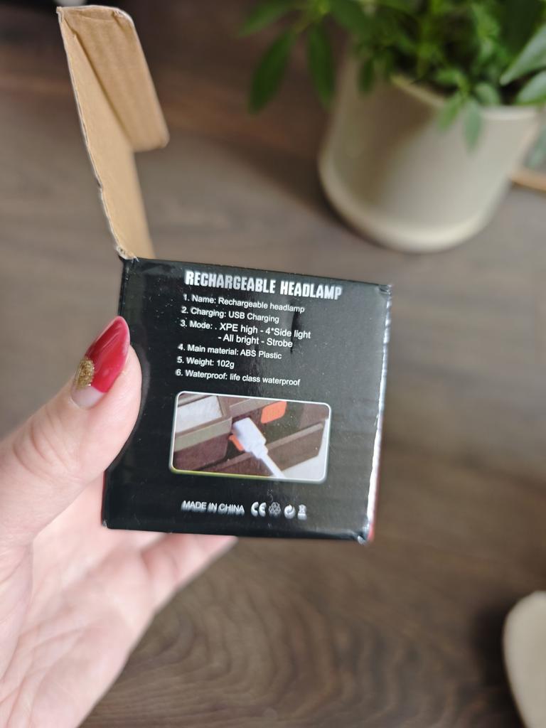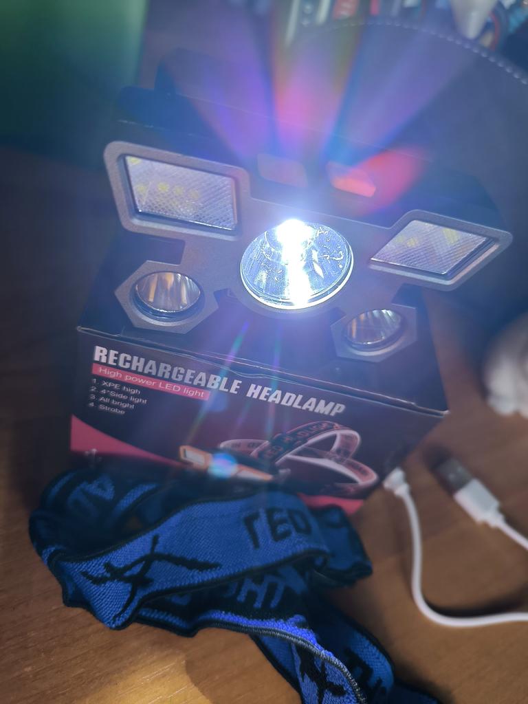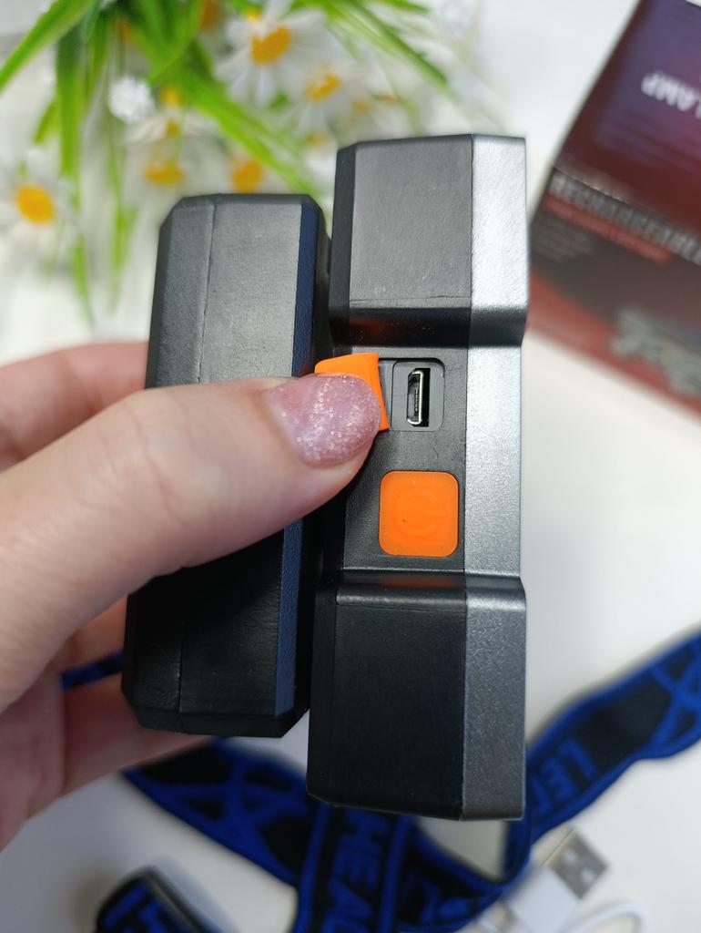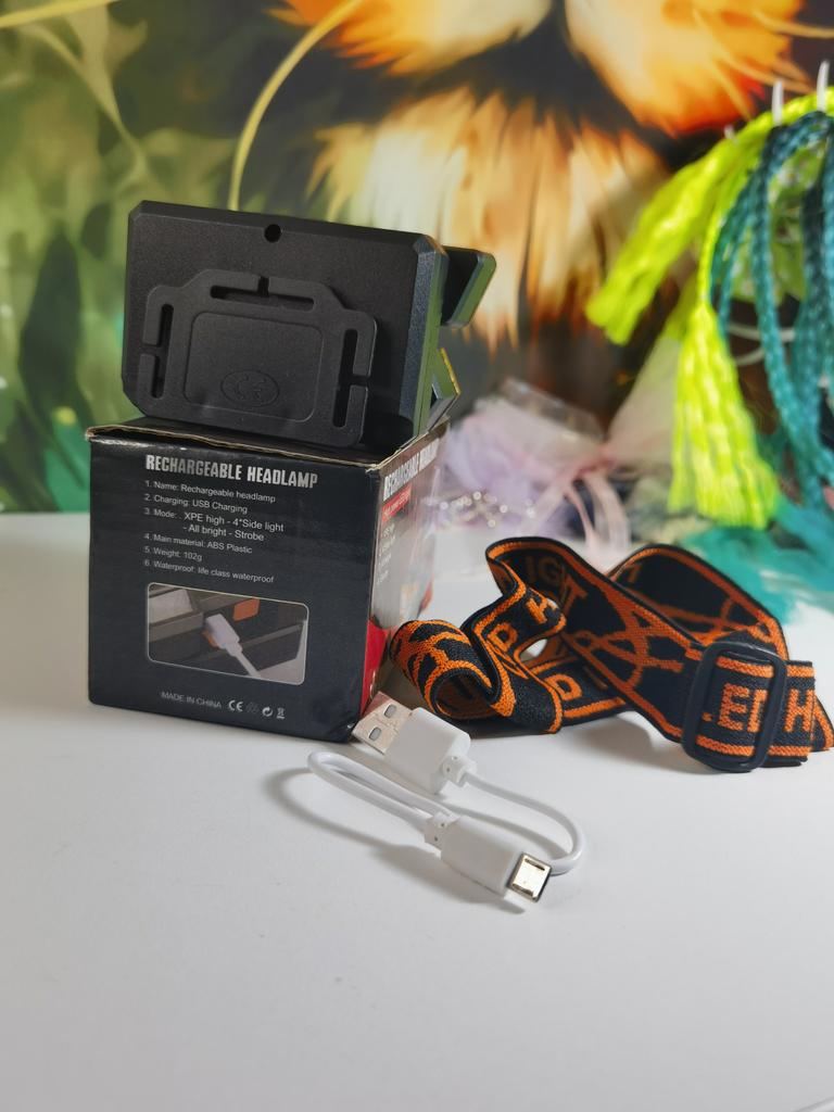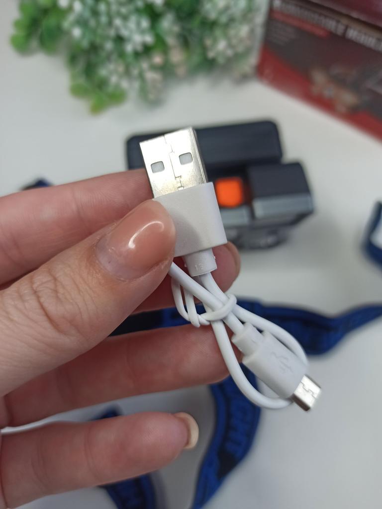 Headlamp. This is a compact and practical lighting device that attaches to the head and provides complete freedom of hands. Headlamp is widely used in tourism, hiking, camping, fishing, hunting and during work in the dark.. Such a flashlight allows directing light exactly where needed, without restricting movement and increasing user safety.. Has 4 lighting modes. A USB cable is included. The flashlight arrived charged, works well. I recommend to buy.
