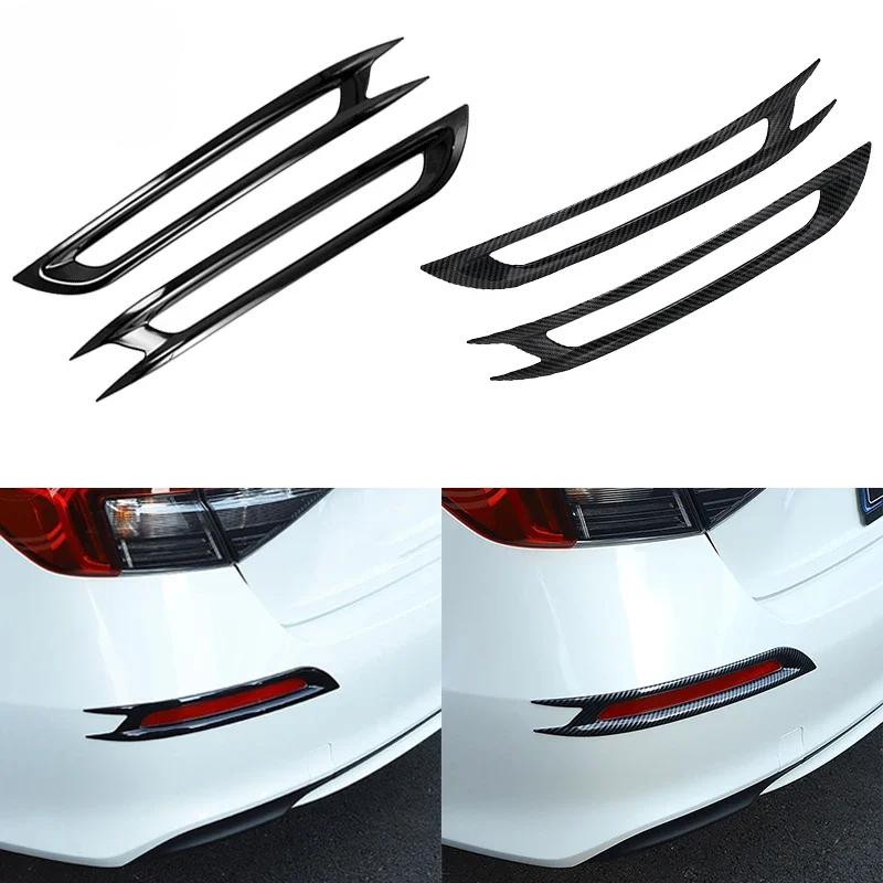 Black/Carbon Fiber Look Rear Bumper Reflector Decorative Frame For Honda Civic 11th Gen 2022-2024 Rear Fog Light Lamp Cover Trim