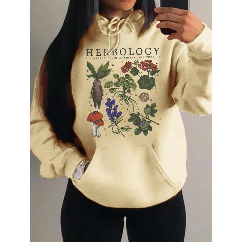 Herbology Plant Composition Printing Hoodies Women Hip Hop All-Match Sportswear Casual Hoody Autumn Pocket Pullover
