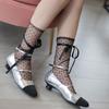 Women Summer Ultra Thin Sexy Black Ribbon Bowknot Polka Dots Enchanting Stacked Socks Sweet Sheer Tulle Jk Cute Mid Tube Socks