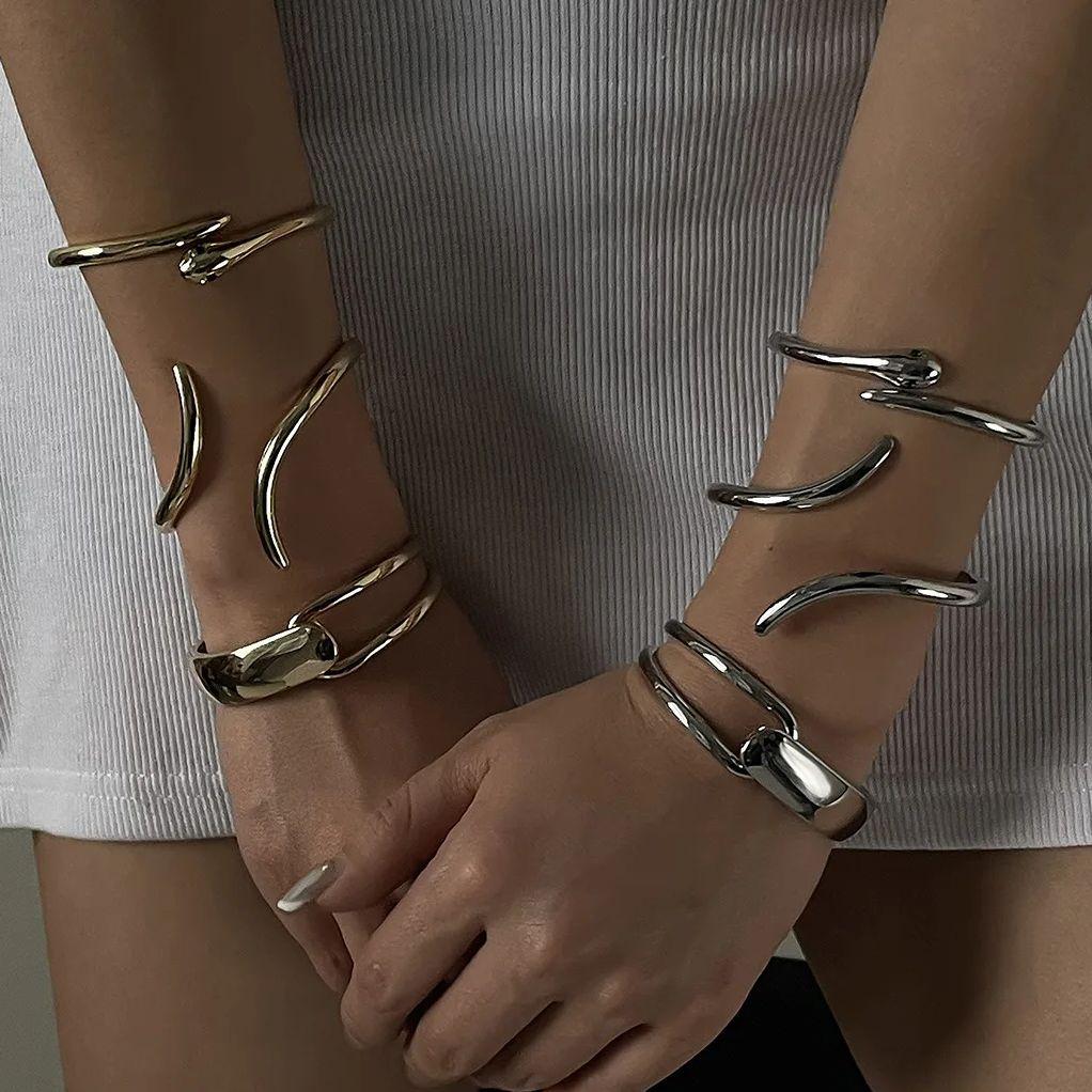 DIEZI Exaggerated Simple Geometric Cuff Spring Bangles Fashion Punk Gold Silver Color Heavy Metal Bracelet For Women Men Jewelry