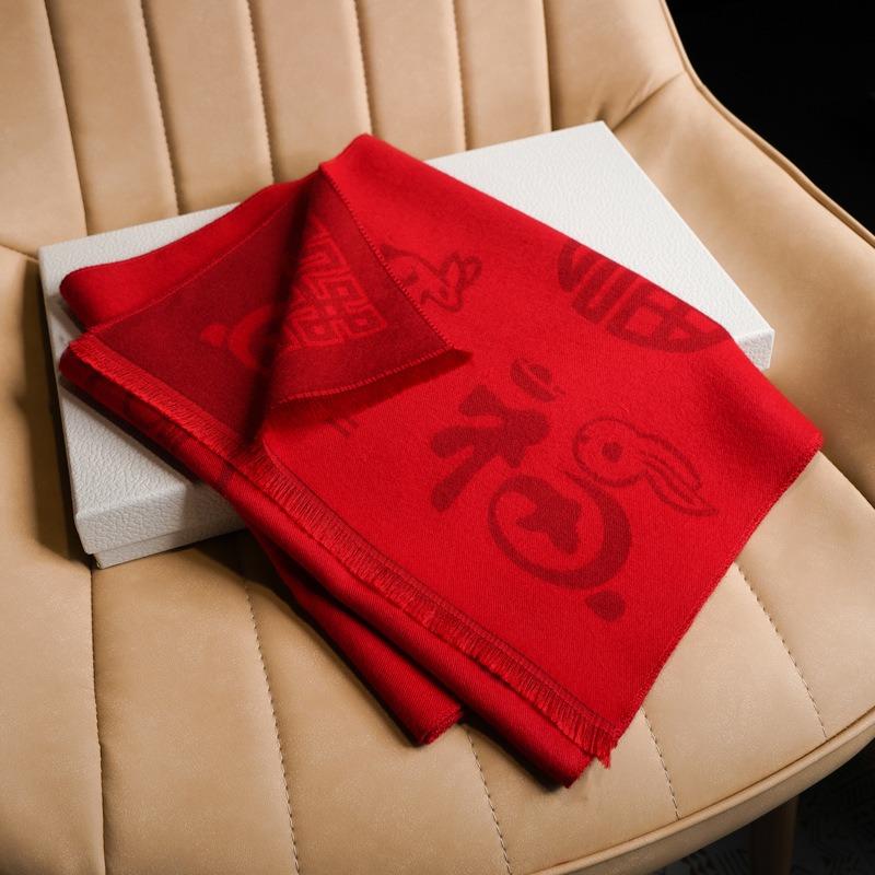 Imitation Cashmere Red Scarf Men's and Women's Winter Big Red Rabbit Shawl