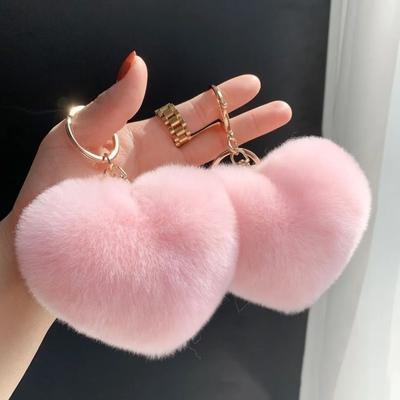 [Cute Little Love] Real Rex Rabbit Hair Heart-shaped Car Keychain Pendant Ins Hair Pom-pom Book Bag Pendant