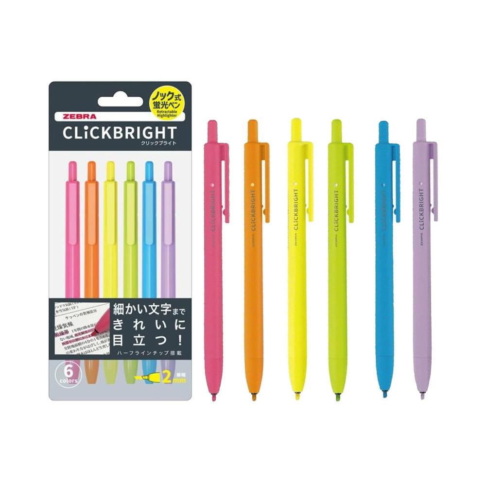 Japan Zebra Fluorescent Pen Click Bright 1 Pc Set of 6