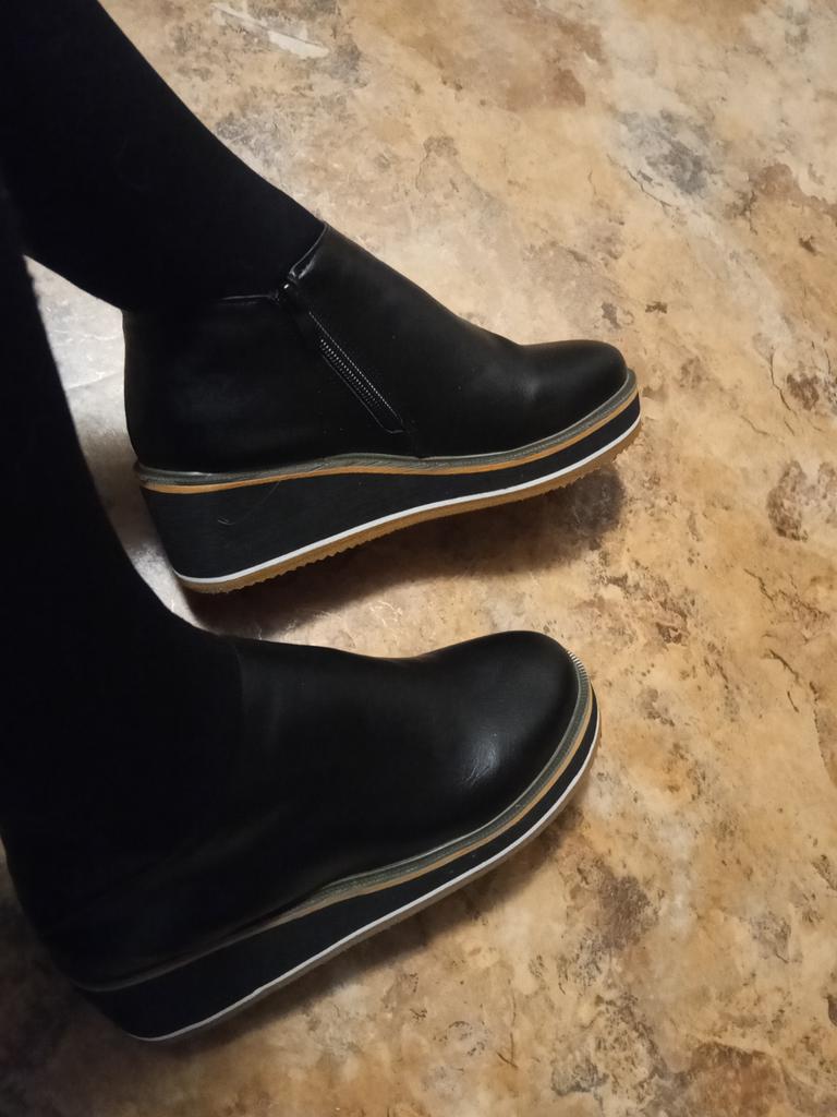 Women Short Boots Round Toe High Top Platform Wedges Retro Side Zipper Round Head Solid Color Platform PU Boots