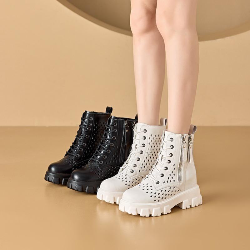 Spring Leather Heightening Mesh Martin Boots Women's Retro Hollow High Heel Lightweight Cool Boots Women
