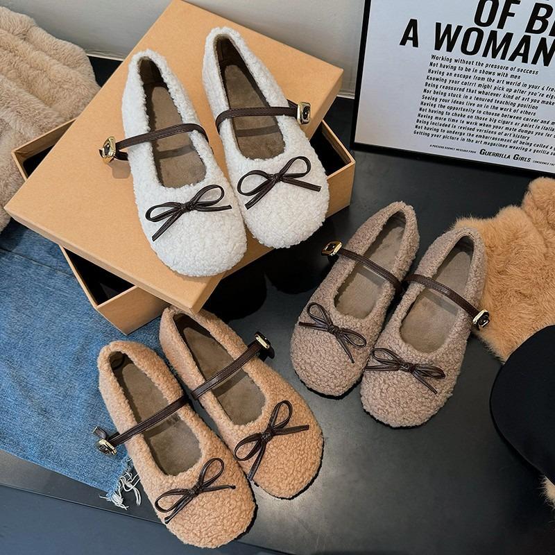 Winter New Flat-bottomed Velvet Warm Cotton Shoes Women's Fluffy Shoes Students Solid Color Cute Ladyshoes Doudou Shoes