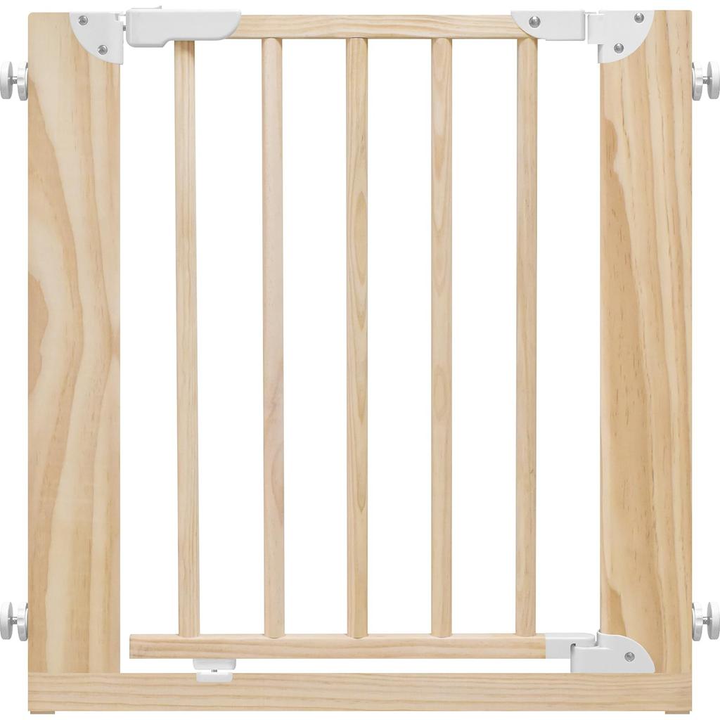 JTC BABY Wooden Natural Gate, White, Baby Gate, Installation Width 75-85cm, Tension Type, Auto-Close, Door Opening, Double Lock