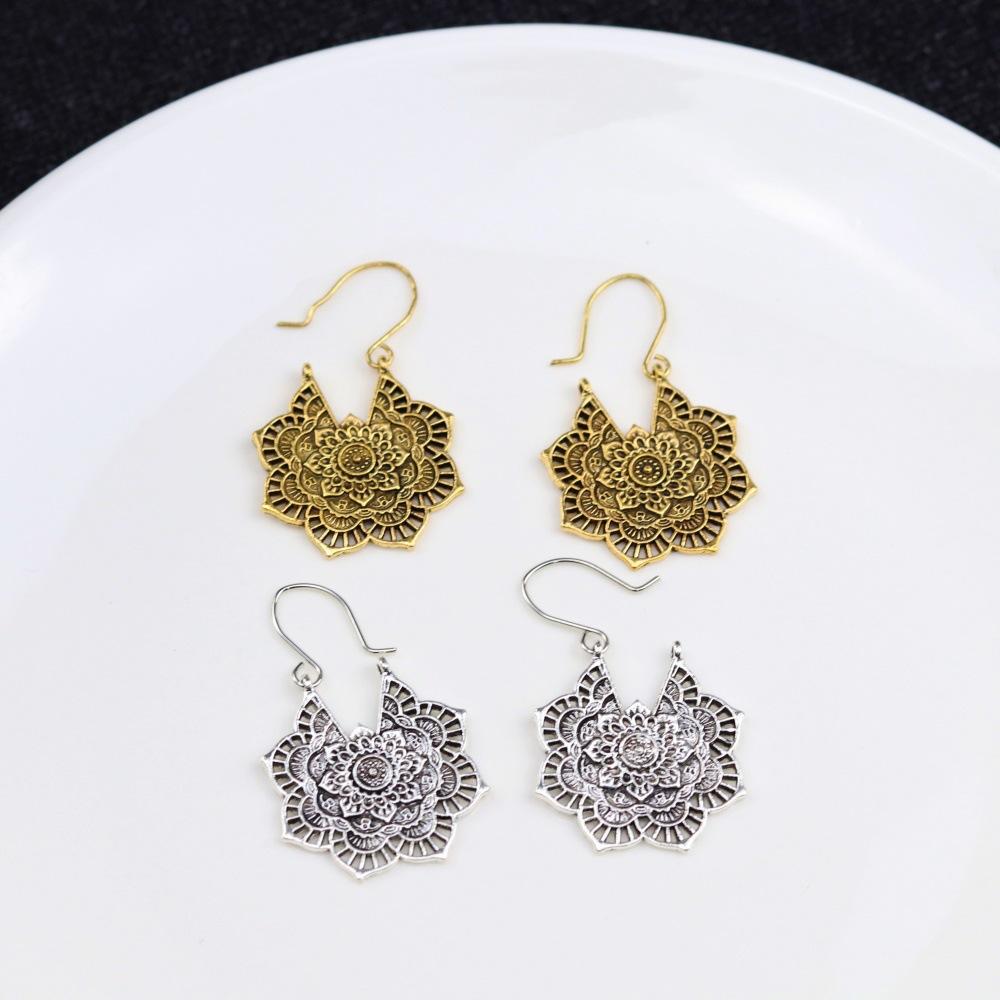 Hollow Flower Earrings for Ladies, Vintage Bohemian Carved Court Earrings