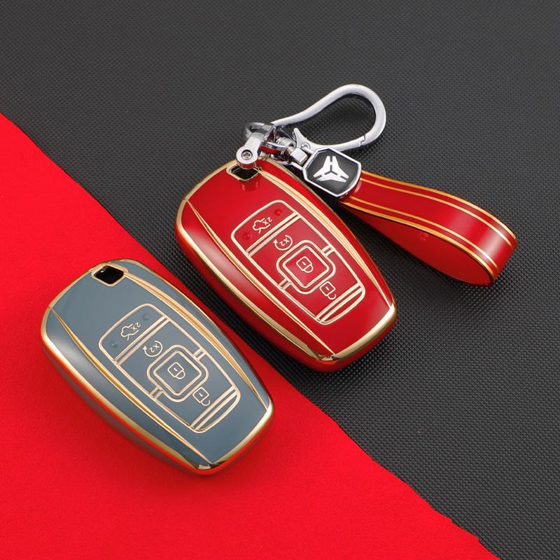 Lincoln Key Case for Aviator, Navigator, MKZ, Continental - TPU Gold Edged Protective Shell with Buckle