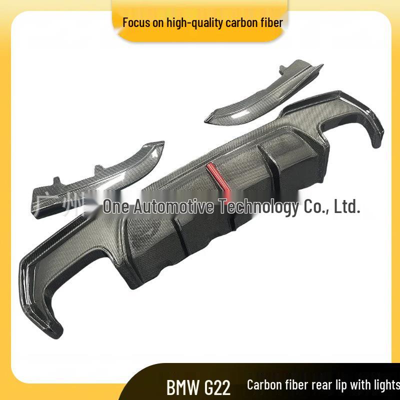 BMW 4 Series G22 Coupe Carbon Fiber Rear Spoiler with Lights & Corner Inserts - Three-Piece Design
