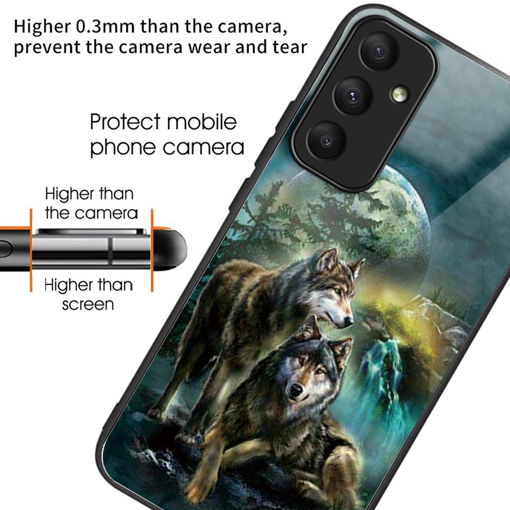 For Samsung Galaxy A55 5G Phone Case Tempered Glass Back Cover with Pattern Design