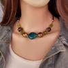 Vintage Acrylic Beaded Pendant Women Stylish Rope Chain Statement Necklace for Daily Wear Commuting Gifts