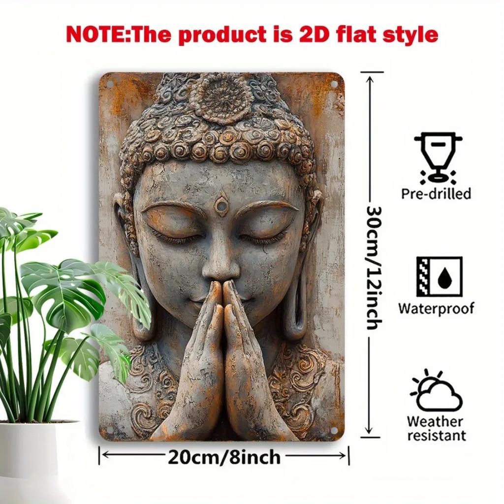 Vintage Golden Leaf Buddha Aluminum Sign | Retro Metal Wall Art – Easy-Install Decor for Home, Garden & Room Spaces