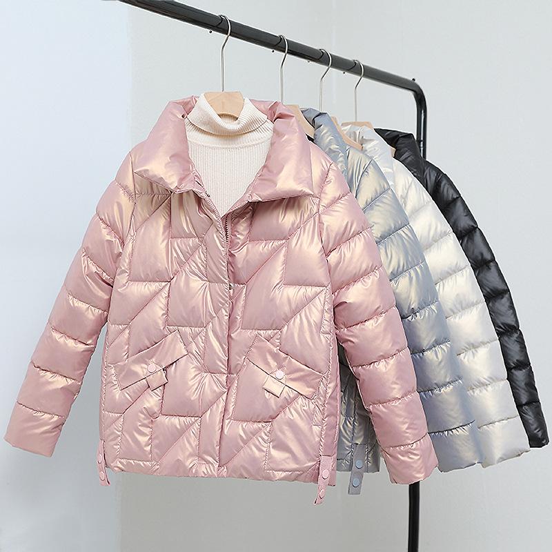 Women Jacket Winter Parkas Female Glossy Down Cotton Jackets Stand Collar Casual Warm Parka Short Coat Female Outwear