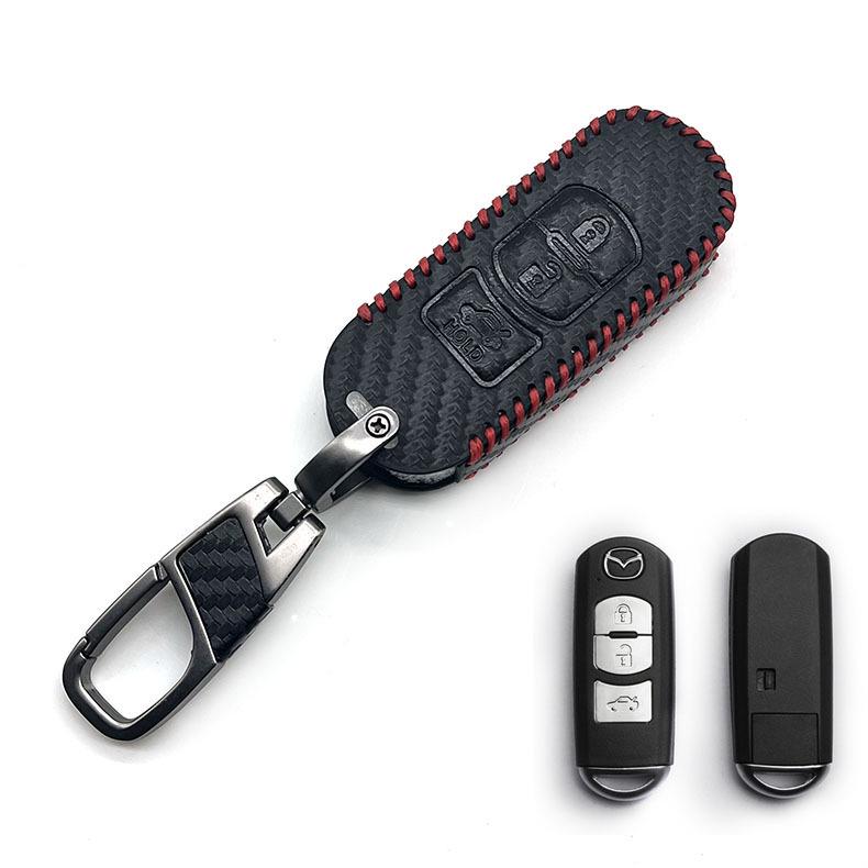 Mazda Axela/Atenza Carbon Fiber Leather Key Case with Chain