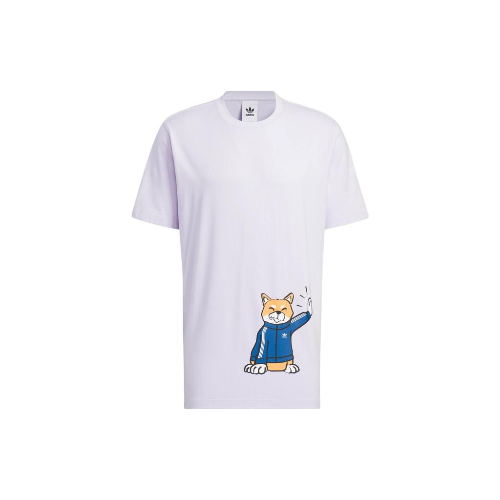 Adidas Originals Trefoil Cartoon Shiba Inu Print Sports Short Sleeve T-Shirt Men Tops Light-Purple H49576