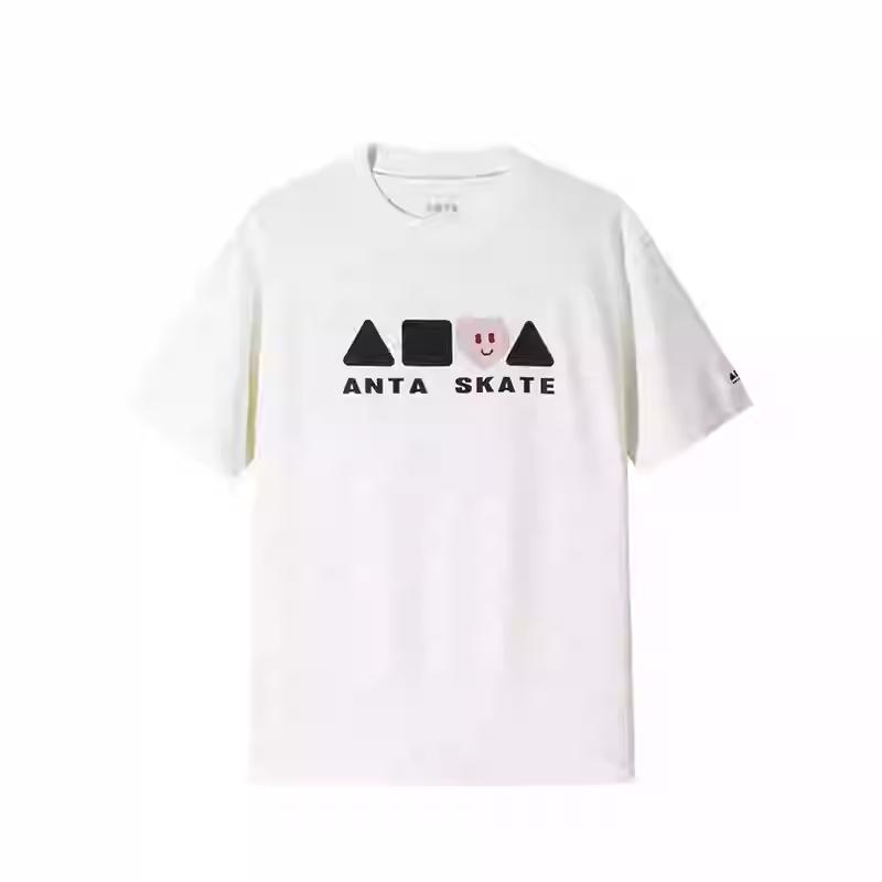 Anta Sports Lifestyle Series Letter Round Neck Comfortable Breathable Versatile Loose Short Sleeve T-Shirt Unisex Tops Paper-White 172528101-1